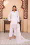 This expertly crafted three-piece set features self-designed lawn fabric paired with a chicken kari embroidered shirt, showcasing intricate traditional needlework. The ensemble is completed with a beautifully embroidered dupatta, adding a touch of elegance and sophistication. Ideal for those who appreciate fine craftsmanship and timeless style in their wardrobe.