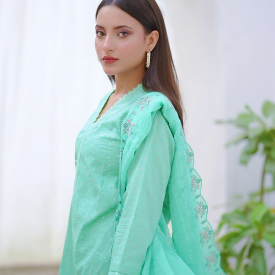 This elegant three-piece set features a self-design lawn fabric with intricate chicken kari embroidery, complemented by a beautifully embroidered dupatta. Perfectly crafted for comfort and style, it offers a refined look suitable for both casual and formal occasions. The breathable lawn material ensures all-day wearability, while the detailed embroidery adds a touch of sophistication to your wardrobe.