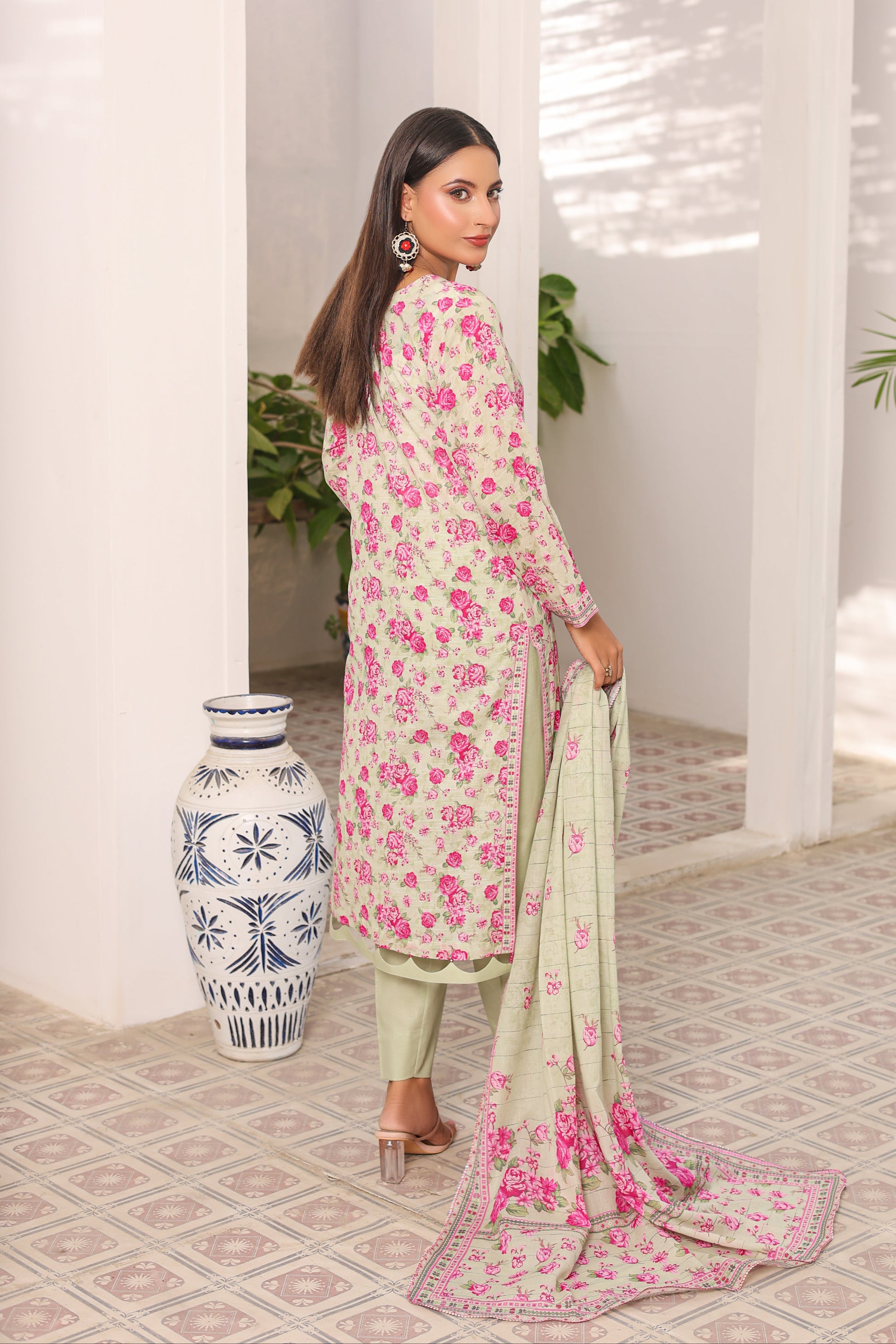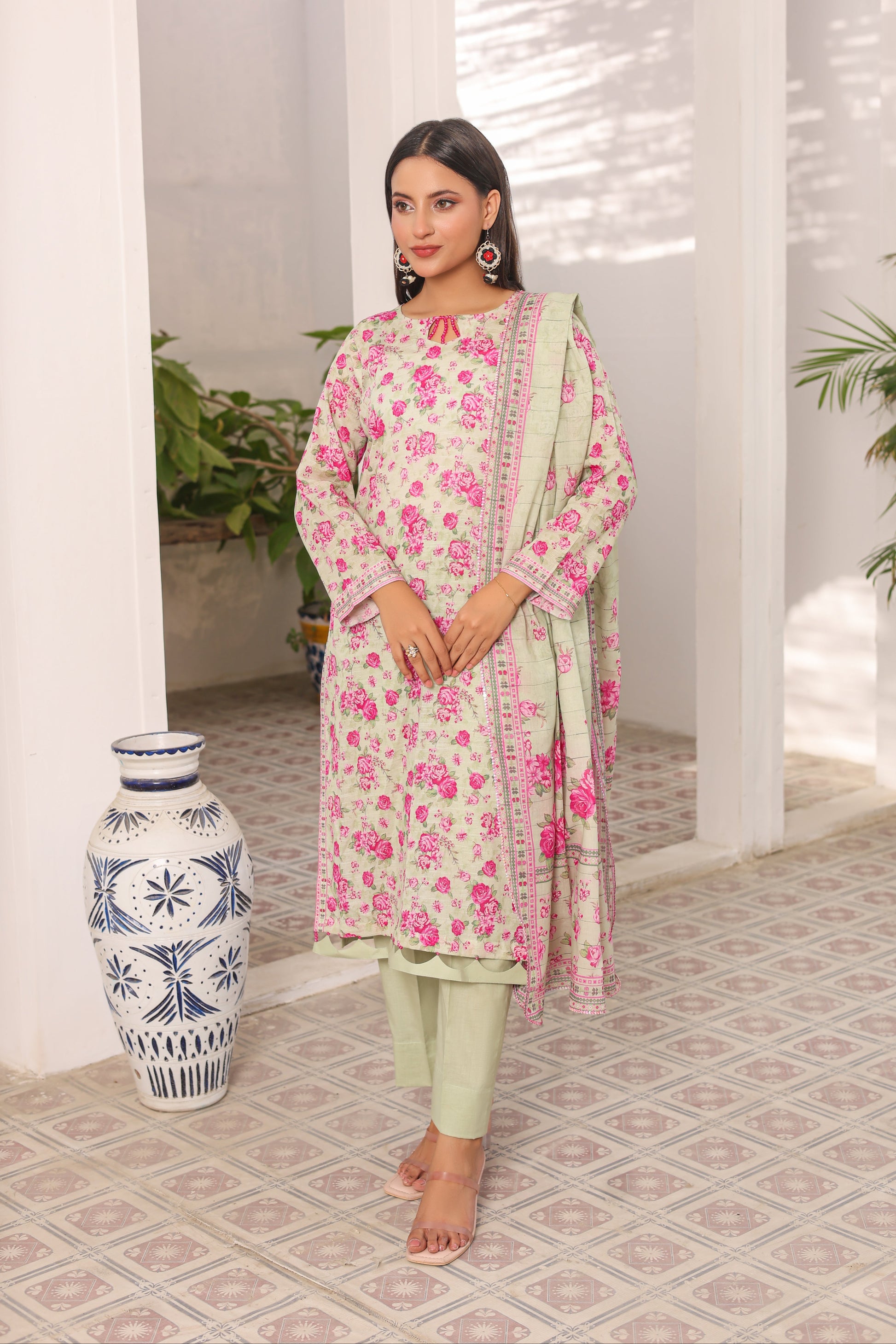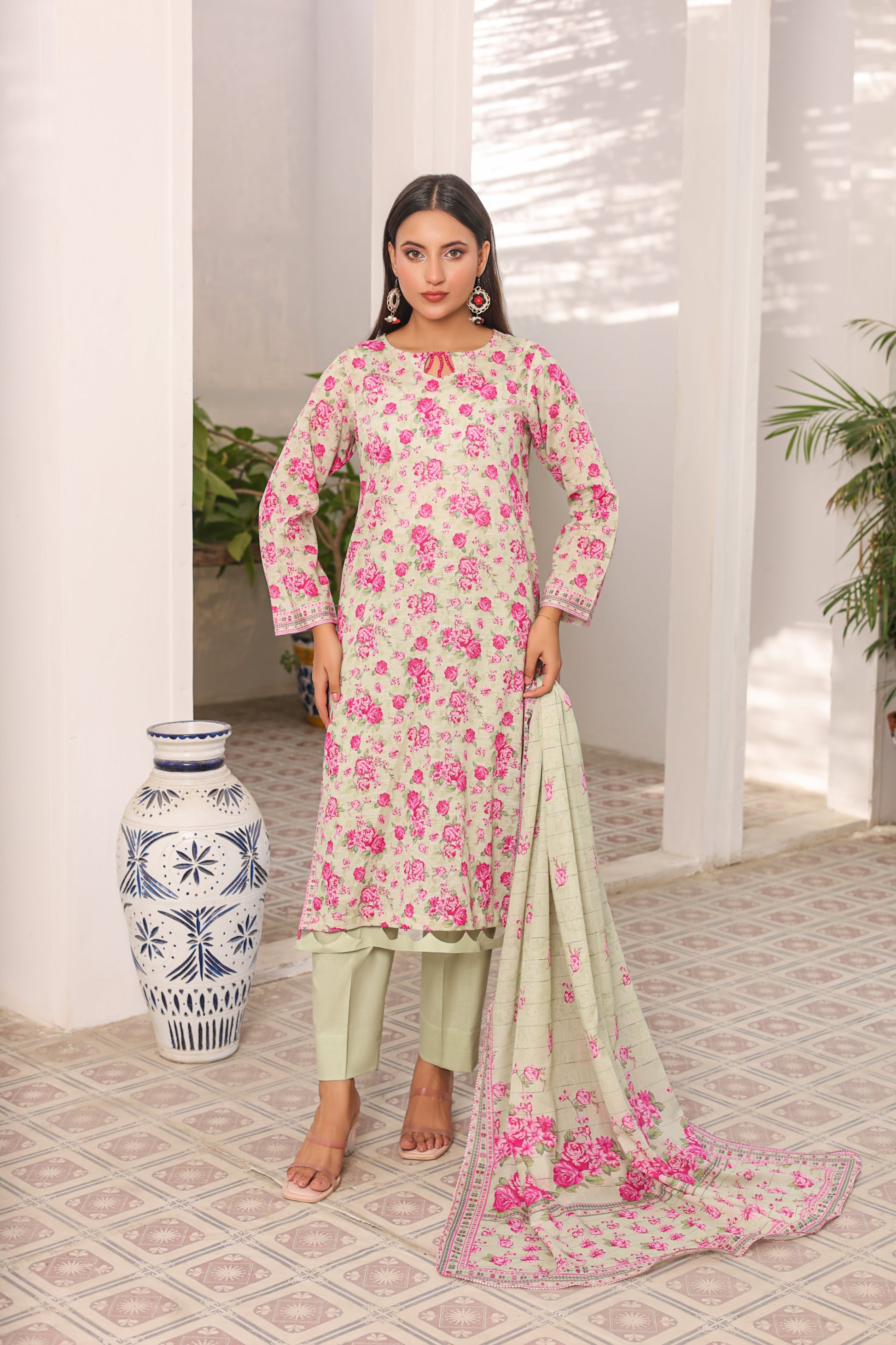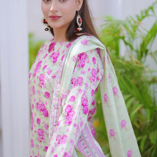 This sophisticated three-piece set features a printed doria lawn shirt paired with a plain trouser for balanced elegance. The printed dupatta complements the ensemble, adding a cohesive and stylish touch. Designed for comfort and refined style, this outfit is perfect for those who appreciate expert craftsmanship and timeless appeal.