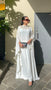 This pristine white abaya features exquisite golden embroidery concentrated around the neckline and extending down the front panel. The cape-like sleeves create a dramatic, flowing effect while maintaining the garment's modest coverage. The clean lines and minimal design are elevated by the intricate metallic threadwork, making it ideal for special occasions. The floor-length silhouette and refined details exemplify sophisticated modest fashion.